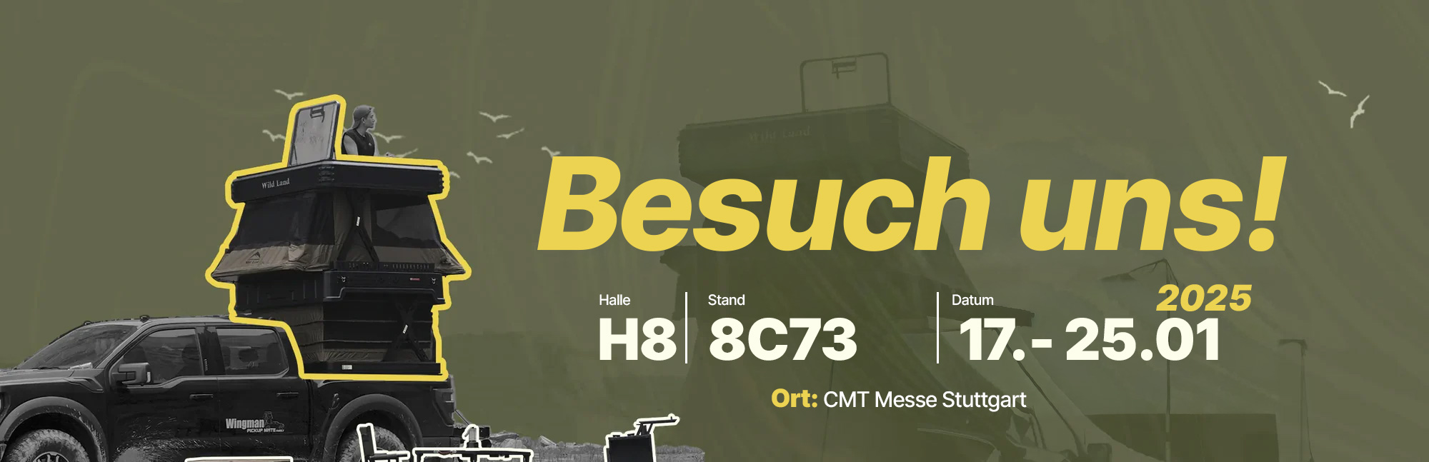 Seit der Einführung des „weltweit ersten automatischen Dachzelts mit kabelloser Fernbedienung“ konzentrieren wir uns darauf, die Probleme der Verbraucher mit unserem originellen Design zu lösen, das tief in den Genen von Wild Land verankert ist. Indem wir Outdoor-Ausrüstung für ein rundum angenehmes Erlebnis bieten, kann jeder Outdoor-Enthusiast ein hochwertiges Campingleben in vollen Zügen genießen. Dies ist die treibende Kraft hinter dem kontinuierlichen Fortschritt von Wild Land und der Grund, warum sich viele Verbraucher für Wild Land entscheiden.